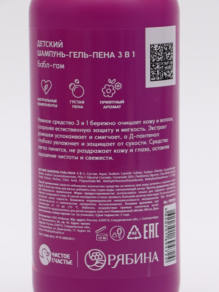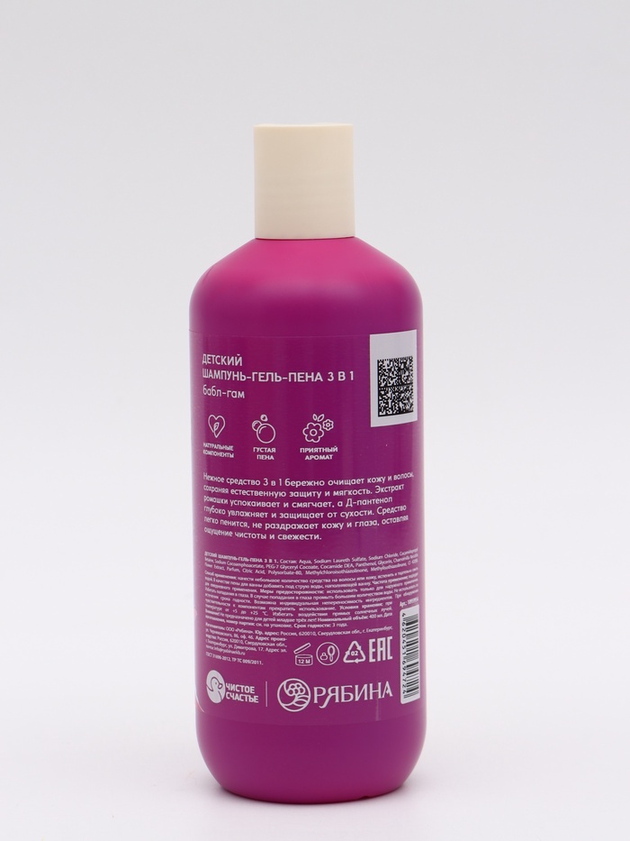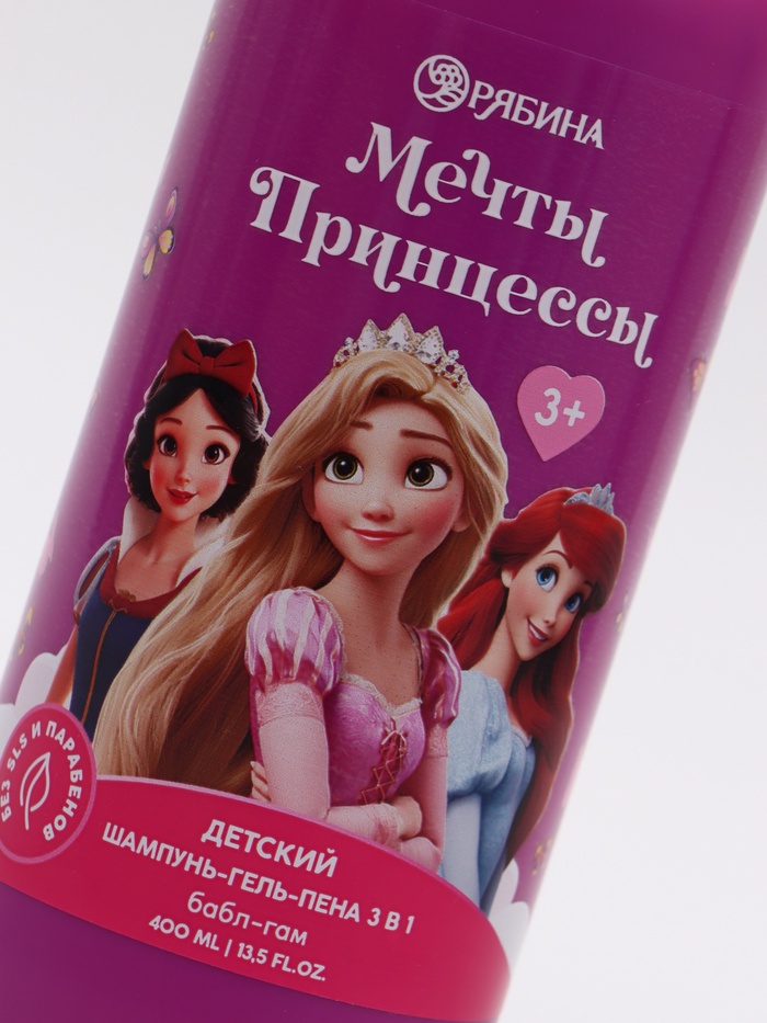 Детский шампунь-гель-пена 3в1, 400 мл, аромат бабл-гам, Принцессы