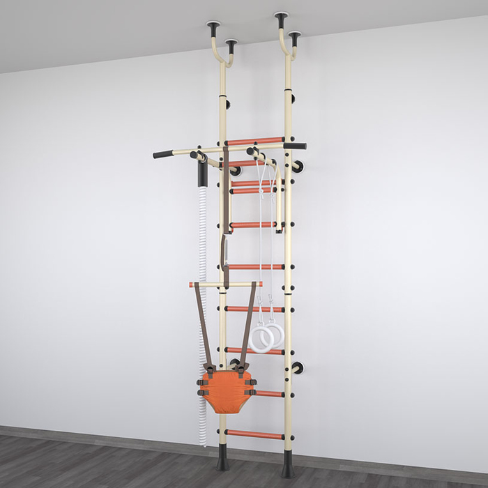 - Держатся на 2 шнурах, которые крепятся на подвижном турнике с помощью клипс.