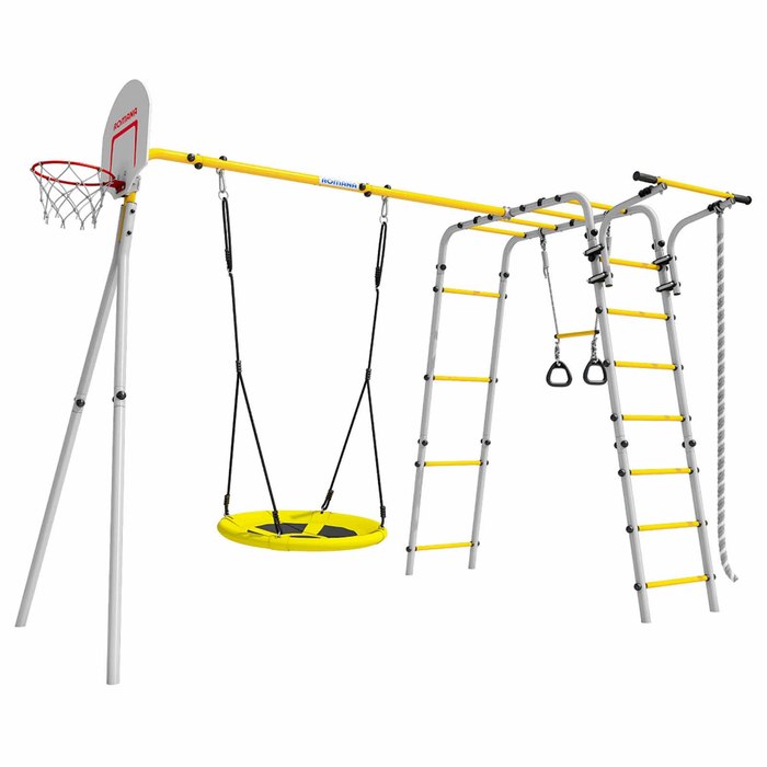 Спортивный комплекс подходит для установки на улице, например, на дачном участке. Разработан специально для детей от 3 лет. С помощью него дети развивают координацию, ловкость и силу, а также могут просто весело проводить время на свежем воздухе.