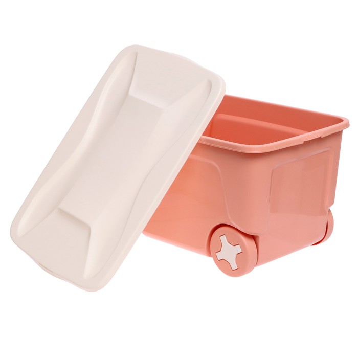 Ящик для игрушек на колёсах — удобное решение для хранения детских вещей. Вместительный объём 50 литров помогает быстро собрать игрушки после игры, а благодаря колёсам контейнер легко перемещать даже ребёнку. Цвет «персиковая карамель» добавит интерьеру уюта и гармонии.