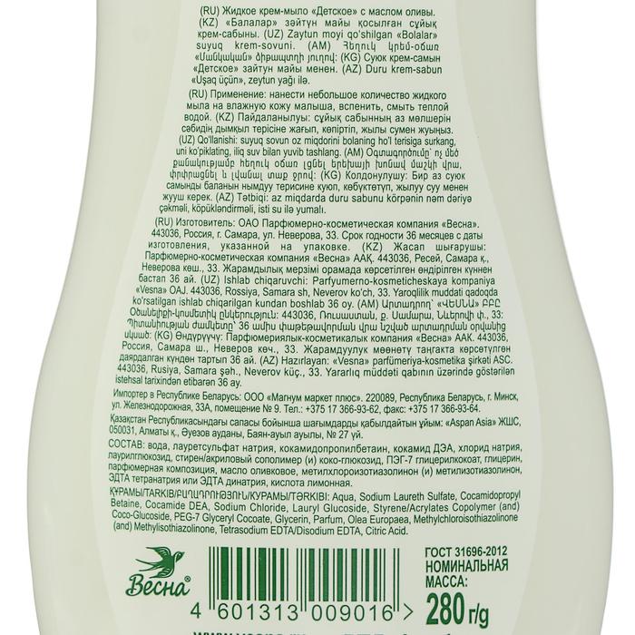 Детское крем-мыло с маслом оливы, 280 мл