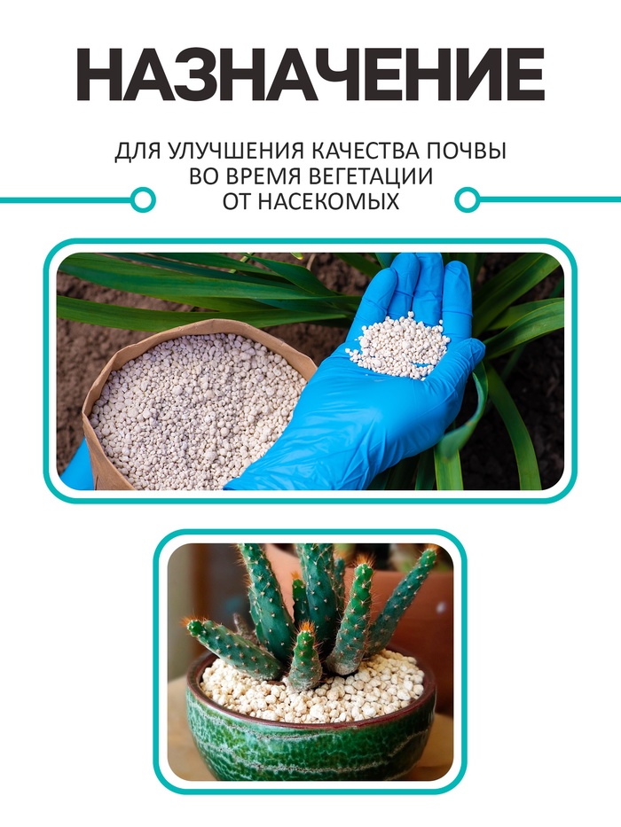 - Для повышения качества почвы нужно посыпать равномерно на поверхность и разрыхлить, расход 150-200 г на м2.