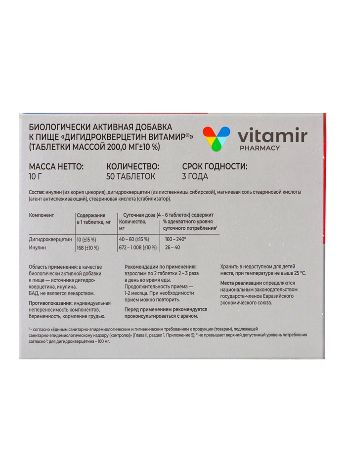 Состав: Инулин, дигидрокверцетин, магния стеарат (агент антислеживающий), стеариновая кислота (стабилизатор).
