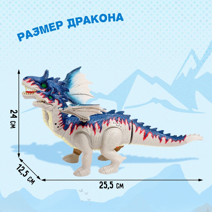 Динозавр в виде дракона — это увлекательная интерактивная игрушка для детей от 3 лет. Она оснащена множеством функций: издаёт звуки настоящего динозавра, мигает цветными огнями, двигает хвостом и крыльями, а также может передвигаться с помощью электрического привода.