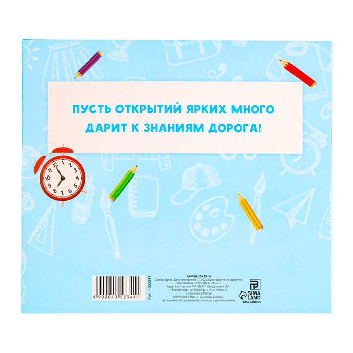 Диплом на Выпускной «Выпускника 1-го класса», 220 гр/кв.м