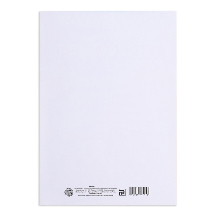 Грамота изготовлена из мелованной бумаги плотностью 157 г/кв.м.