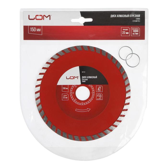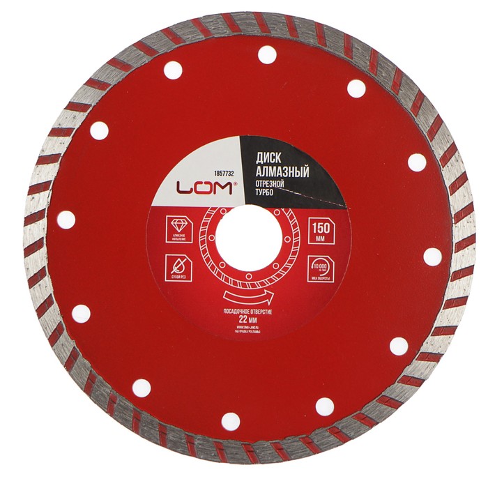 Диск алмазный отрезной сегментный ЛОМ предназначен для работ с угловой шлифовальной машиной.