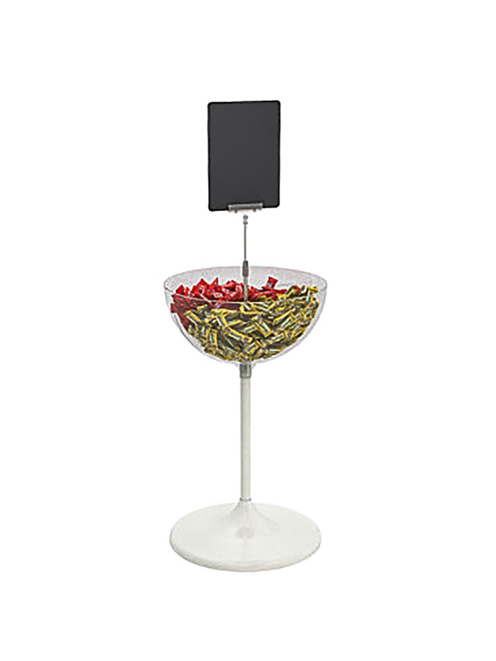Дисплей UNIBOWL 24 обладает большим объемом чаши по сравнению с чашей дисплея UNIBOWL 17 при том же диаметре напольного основания. Больший объем чаши позволяет увеличить размеры выкладки товара или организовать выкладку товаров средних размеров.