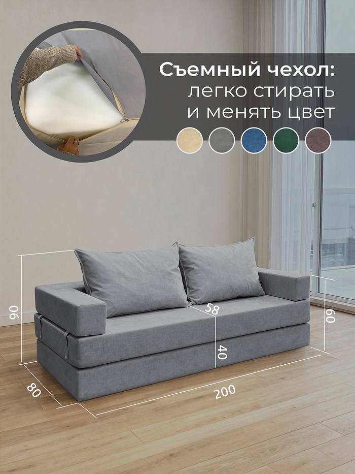 Диван бескаркасный «Брюссель», механизм трансформер, велюр, цвет Серый