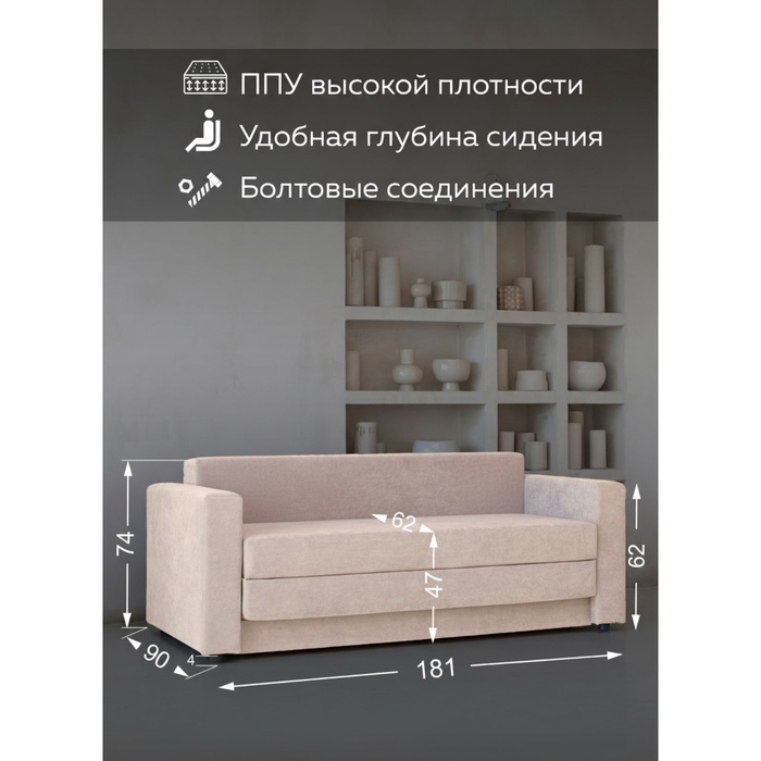 Диван прямой «Верона», механизм аккордион, обивка велюр, цвет бежевый
