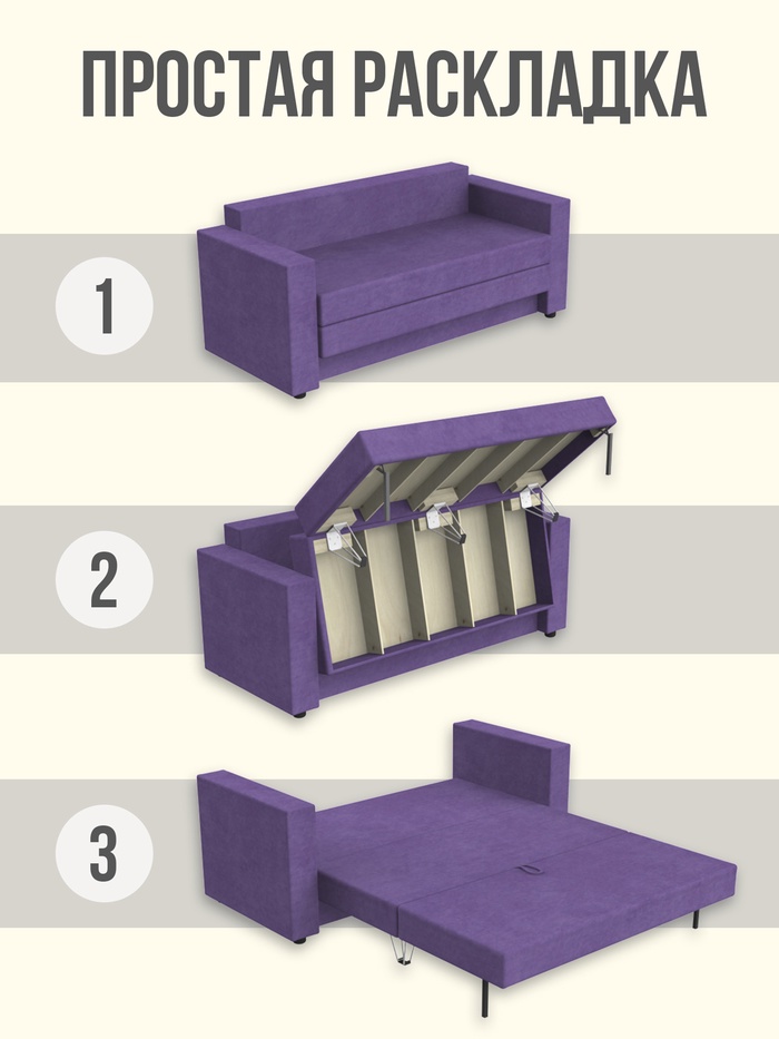 Диван прямой «Верона», механизм аккордион, обивка велюр, цвет фиолетовый