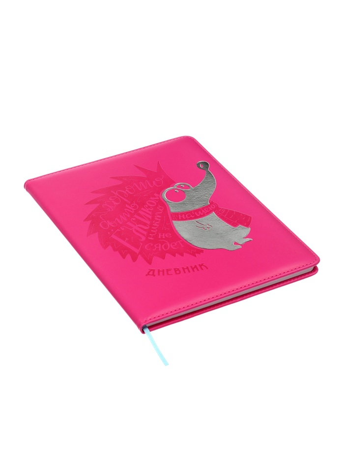 Дневник школьный 1-11 класс, лассе, обложка искуственная кожа розовая, Ежик