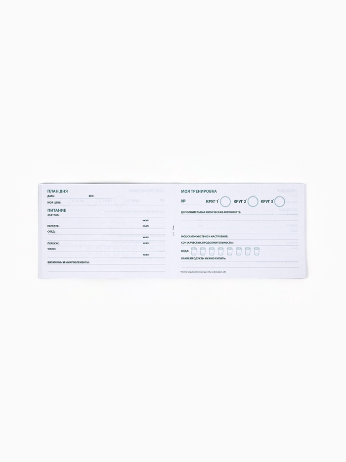 Формат А6 был выбран по рекомендации профессиональных спортсменов, каждый лист отвечает за ежедневные потребности, позволяет оставлять личные заметки и отмечать даты. С помощью дневника тренировок легко отслеживать свои результаты и достигать больших побед!