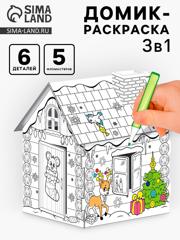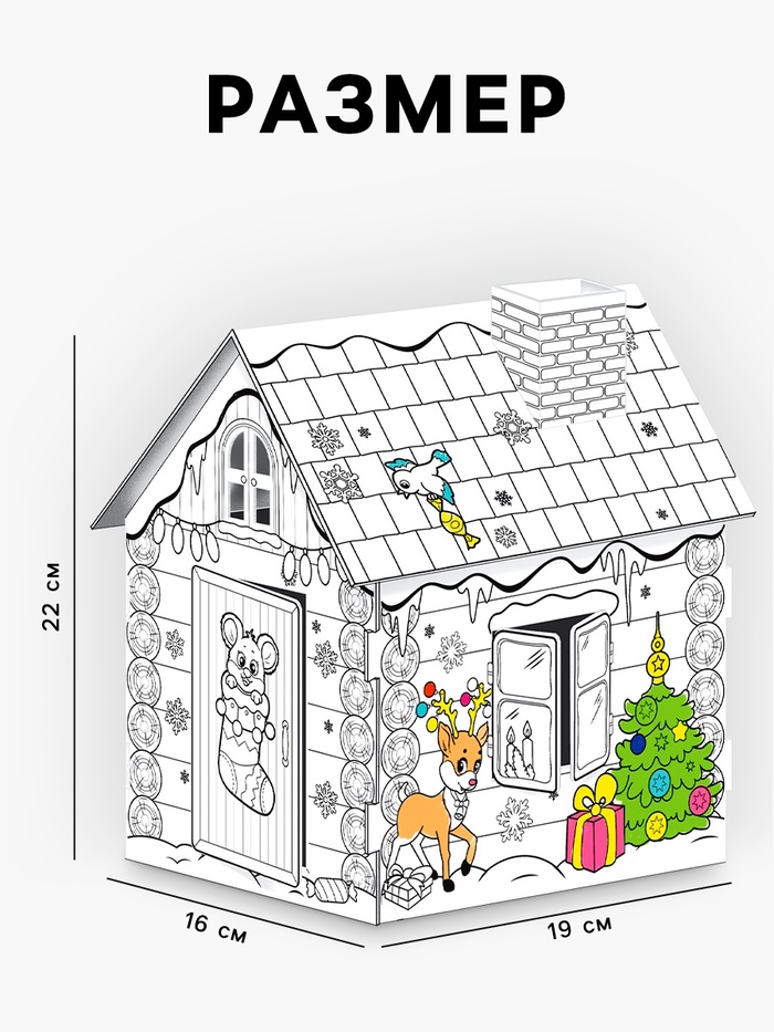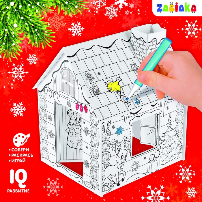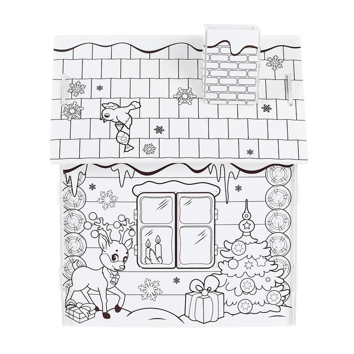 Новогодний домик из картона станет отличным подарком для ребёнка. Внутри малыш обустроит игрушкам уютный уголок, а снаружи раскрасит стены на свой вкус.