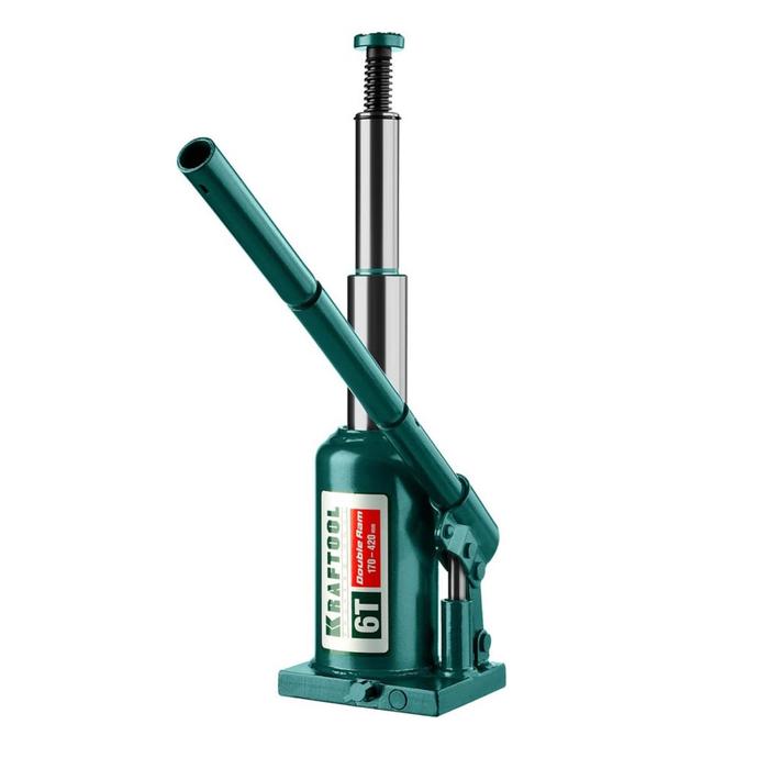 Надежный помощник в подъеме тяжестей Гидравлический бутылочный домкрат Kraftool DOUBLE RAM — это эффективное решение для подъема грузов весом до 6 тонн. С его помощью легко справляться со сложными задачами в автосервисе или на производстве.
