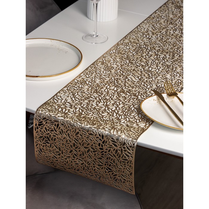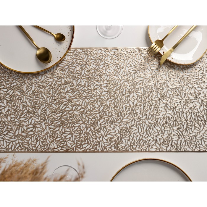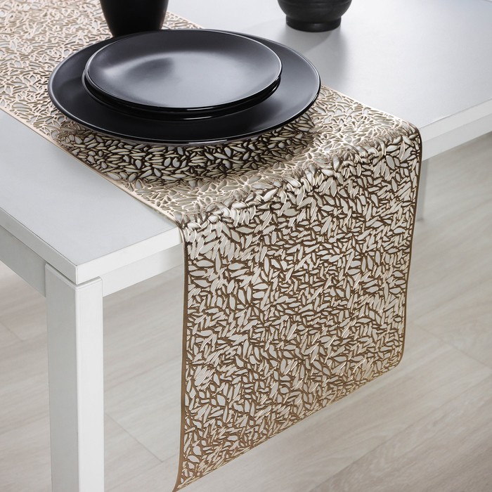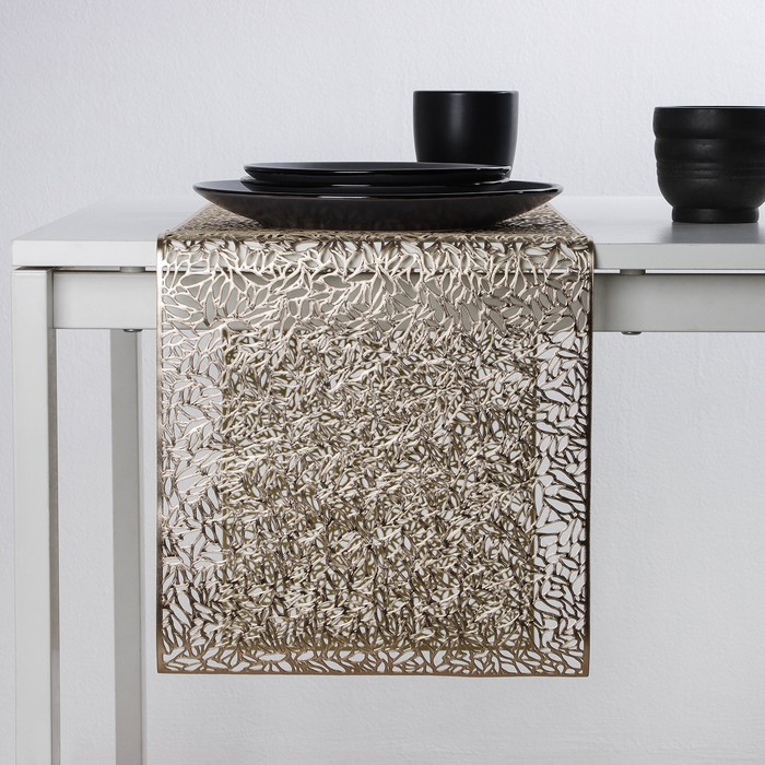 Создайте в вашем доме атмосферу роскоши и тепла с изысканной дорожкой в золотистом цвете. Этот элемент декора станет настоящей жемчужиной вашего стола, придавая каждому приему пищи неповторимый шарм и стиль.