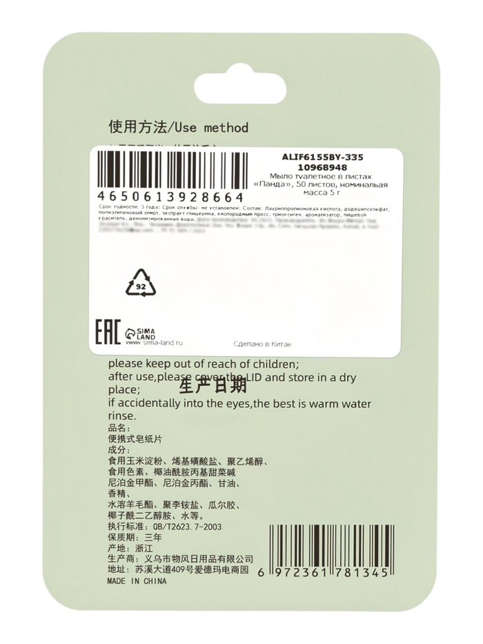 Дорожное мыло "Панда", 50 листов
