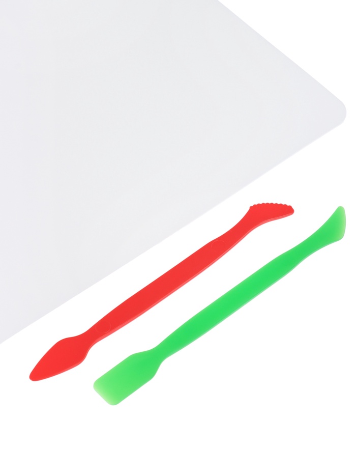 Доска для лепки без бортика предназначена для моделирования из пластилина. Позволяет детям заниматься лепкой, предохраняя мебель от загрязнения. Доска произведена из специального пластика, к которому не липнет пластилин. Два стека в комплекте. Формат: А5.