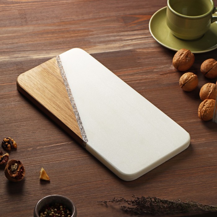 Доска для подачи Magistro Marble, 30×15 см, мрамор, акация