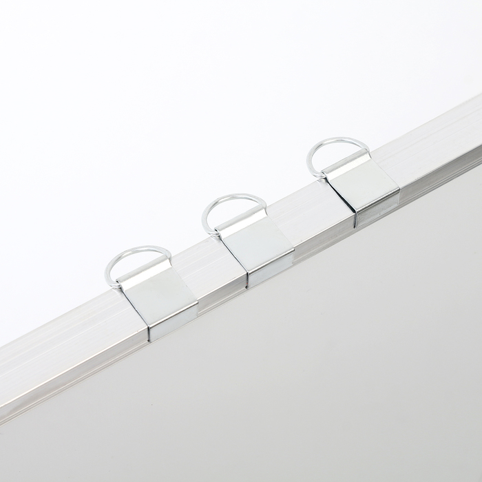 Для комфортного использования доска оснащена полкой для хранения маркеров и стирающей губки. Оборотная сторона стенда сделана из металла. Доска крепится к стене при помощи специальных петелек на шурупы или гвозди.