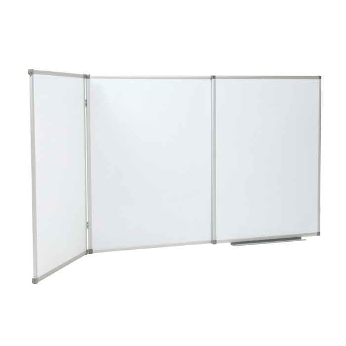 Трехэлементная настенная магнитно-маркерная доска предназначена для проведения презентаций и ведения практических занятий в различных группах. Лаковое покрытие предназначено для письма специальными маркерами для белой доски, а металлическая поверхность позволяет размещать информацию при помощи магнитов.