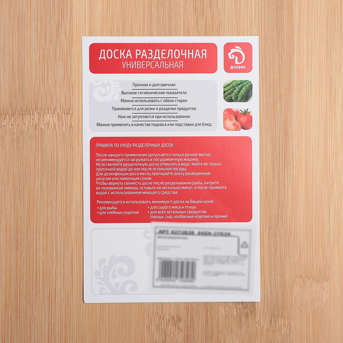 - Практичность: Удобный размер делает доску подходящей для разных видов работы на кухне.