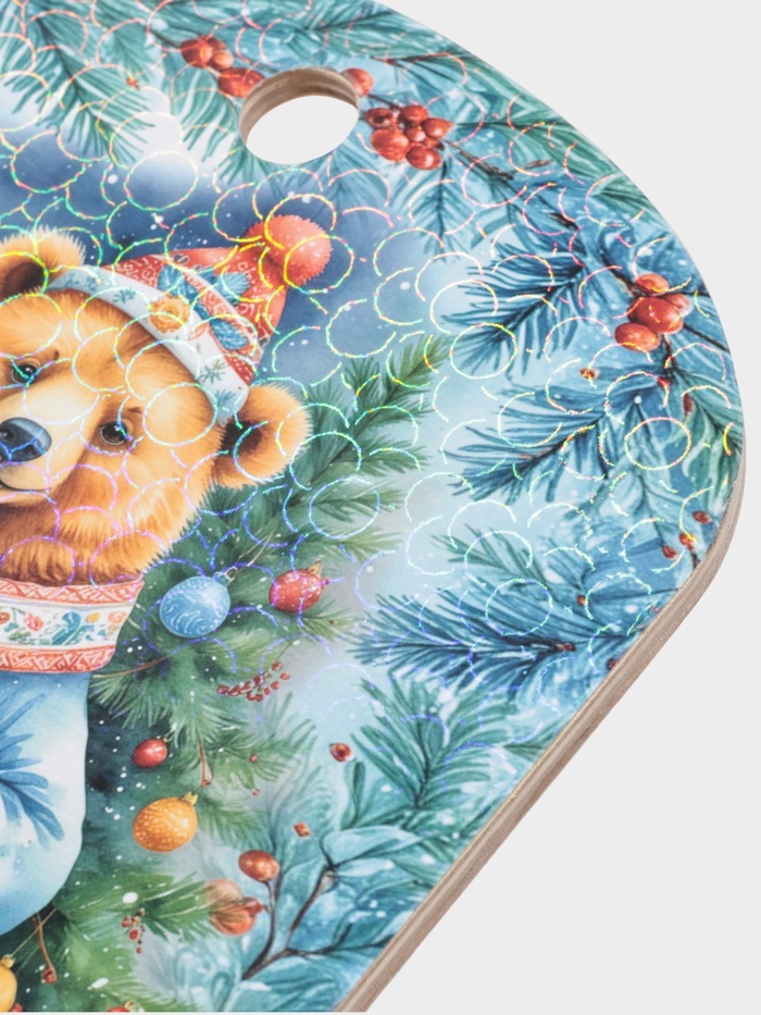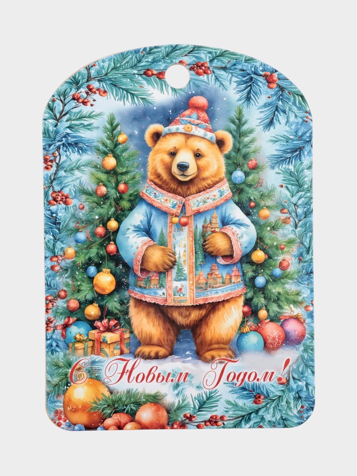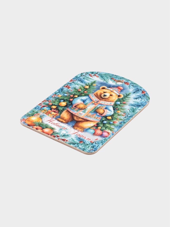 Разделочная доска «С Новым годом! Мишка» — это тёплый акцент на кухне, сочетающий функциональность и праздничное настроение. Яркий рисунок с добрым медвежонком в новогоднем антураже добавляет уюта даже в самый загруженный декабрьский день. Доска подойдёт для лёгкой нарезки овощей, сыров или фруктов, а после — легко превратится в украшение: её можно повесить на стену или дверцу кухонного шкафа, чтобы сохранить дух праздника до последнего мандарина.