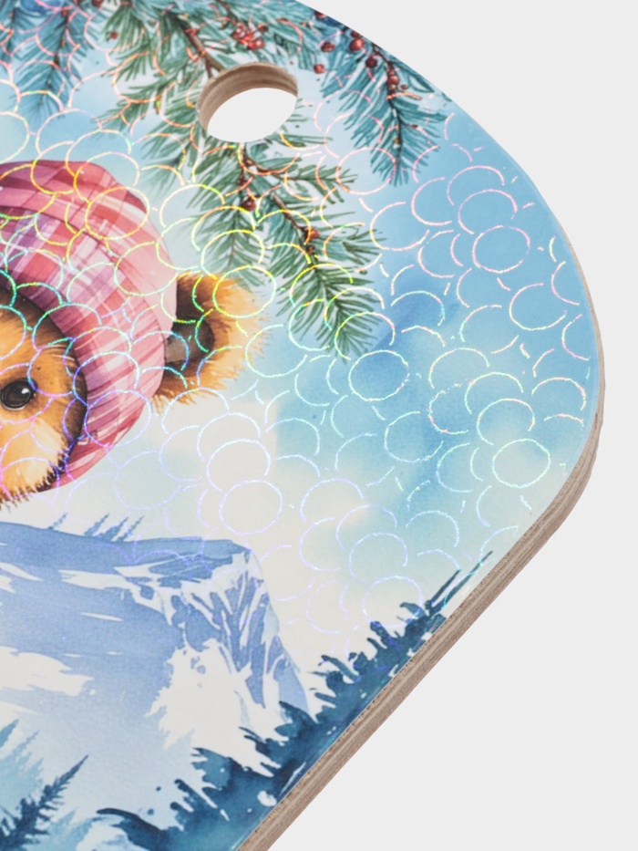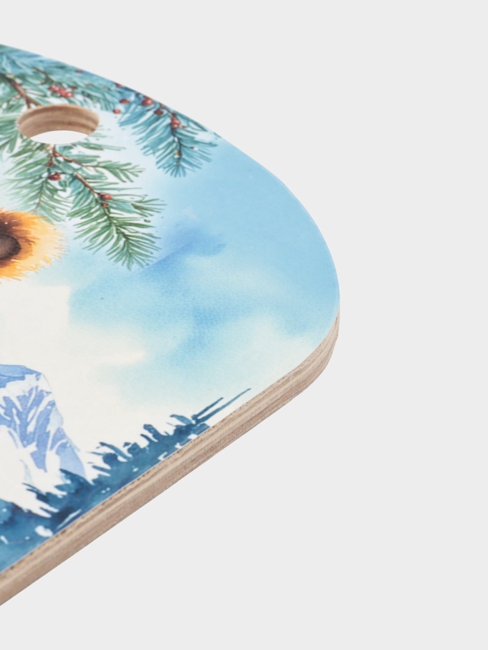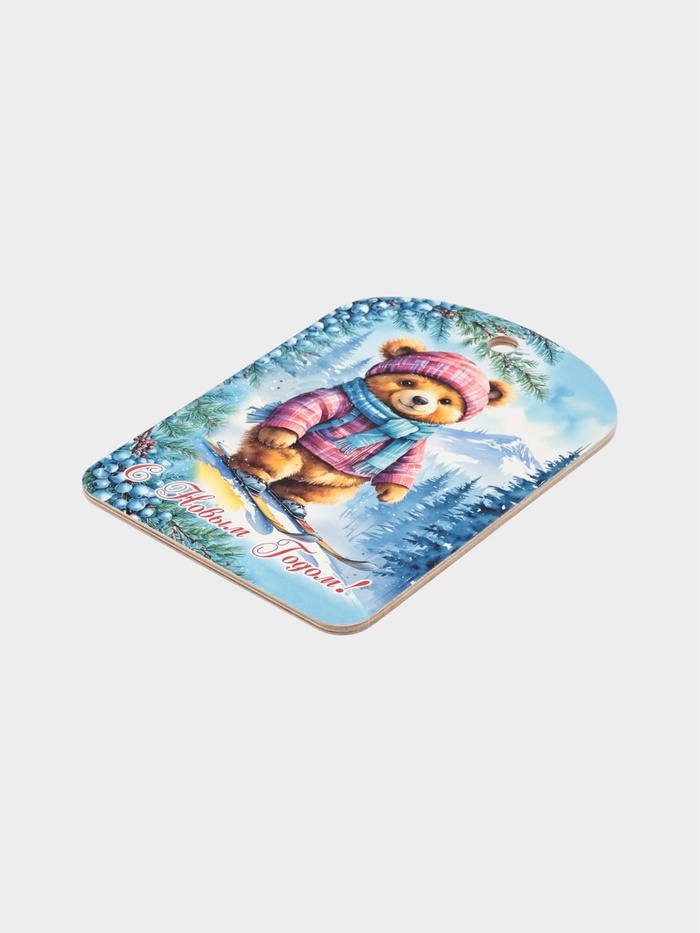 Разделочная доска «С Новым годом! Мишка на лыжах» — это сочетание уюта, праздника и повседневной практичности. С её ярким рисунком в духе зимних каникул кухня превращается в уголок сказки: весёлый мишка на лыжах будто только что вернулся с прогулки по заснеженному лесу. Доска подойдёт для нарезки сыра, овощей или фруктов к праздничному столу, а после — легко станет частью новогоднего декора благодаря подвесной конструкции.