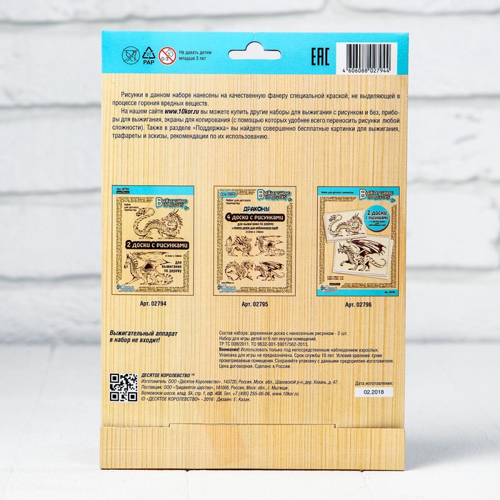 Выжигание по дереву — распространённый вид прикладного искусства. Доски для выжигания и росписи — это хороший подарок для любого ребёнка. Такое занятие поможет интересно провести время и реализовать творческие способности. Рисунок на досках нанесён специальной краской, которая не выделяет вредные вещества в процессе выжигания.