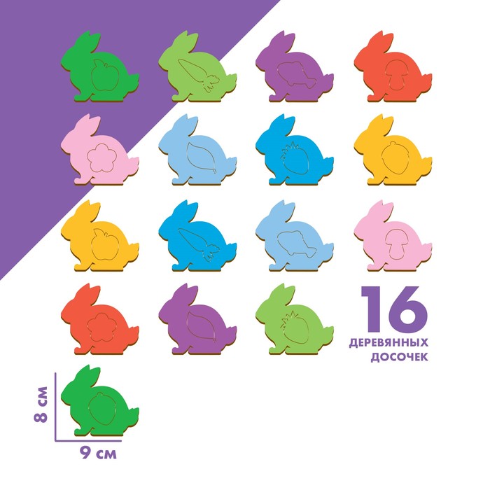 - Задача малыша — поместить нужный элемент в отверстия на досочках.