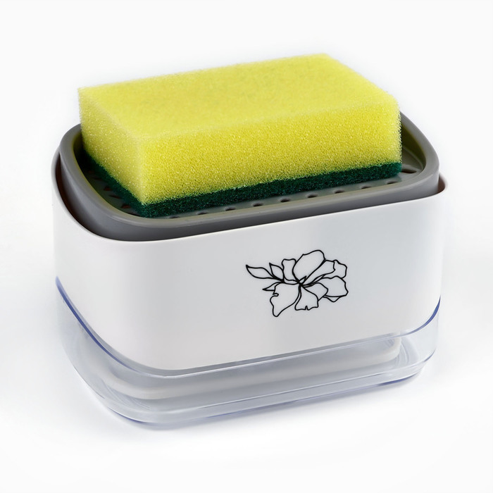 Кухонный дозатор для моющего средства «Цветок» с подставкой для губки размером 14 x 10 см — это удобное и функциональное приспособление для вашей кухни. Он выполнен из качественного пластика и оснащён подставкой для губки, что обеспечивает комфорт при использовании. Благодаря стильному дизайну и компактным размерам, этот дозатор гармонично впишется в интерьер любой кухни и облегчит процесс мытья посуды.