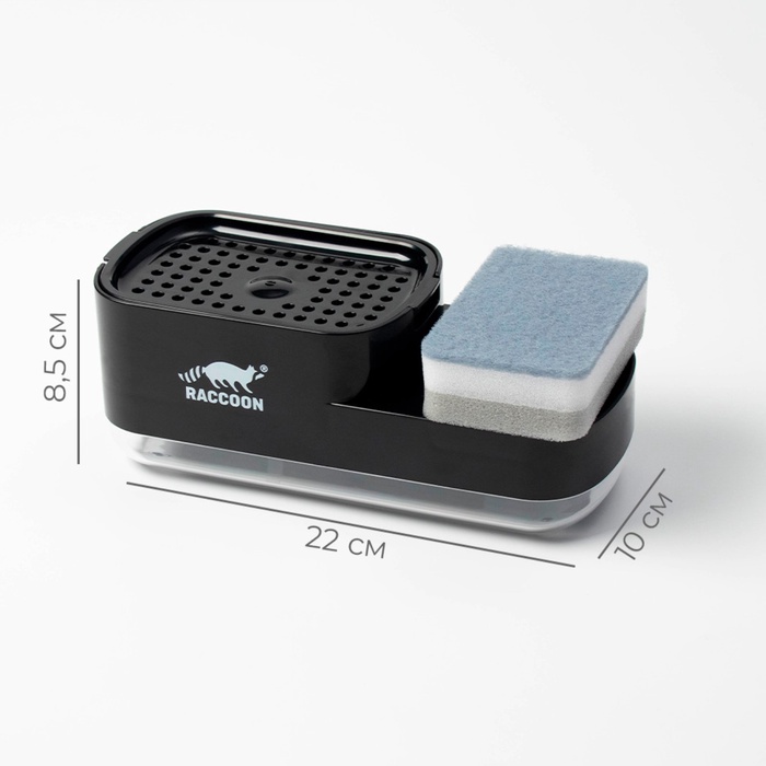 С помощью дозатора для моющего средства торговой марки Racoon вы без труда справитесь с грязной посудой.