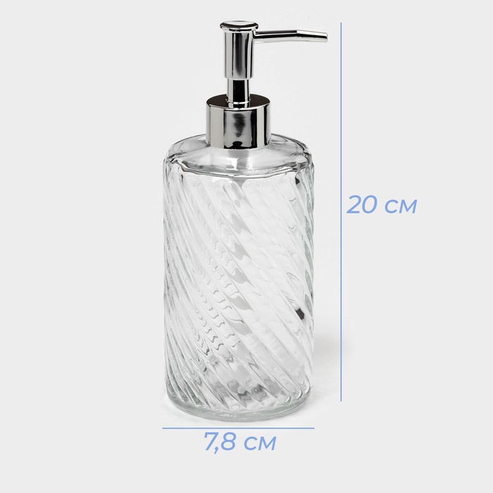 Придайте вашему интерьерам нотку утончённости и стиля с помощью элегантного дозатора для мыла. Объём в 500 мл идеально сочетает в себе компактность и функциональность, позволяя легко хранить жидкое мыло и обеспечивать вам комфорт в использовании. Прозрачный стеклянный корпус подчеркивает его современный и минималистичный дизайн, а текстурированная поверхность добавляет изюминку.