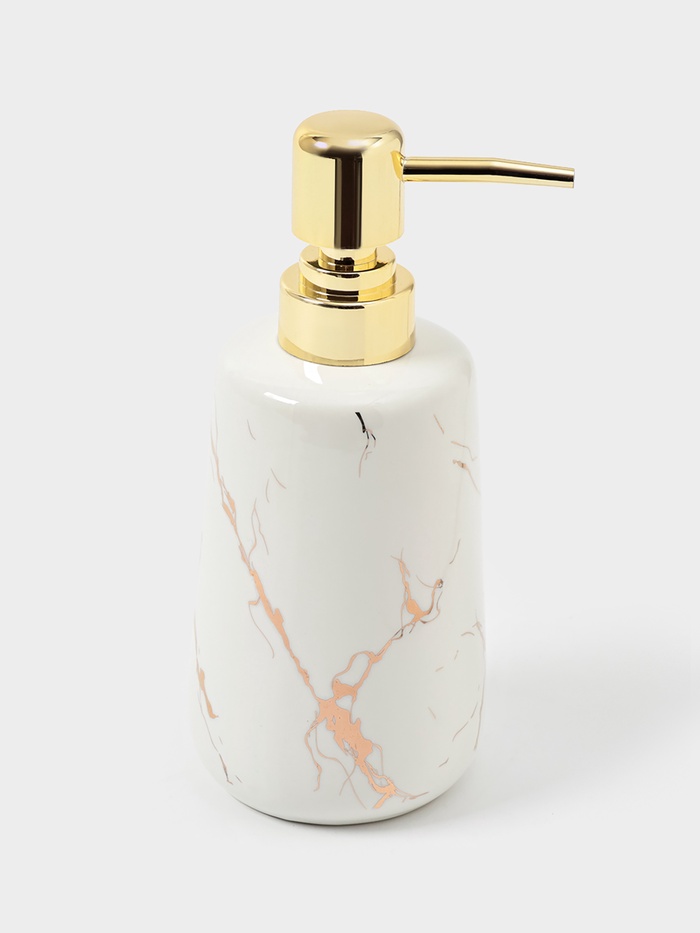 Керамический дозатор для жидкого мыла станет стильным дополнением вашей ванной комнаты или кухни. Такой аксессуар очень удобен в использовании. Просто перелейте жидкое мыло или моющее средство в диспенсер, а когда понадобиться, выдавите необходимое количество лёгким нажатием на помпу дозатора.