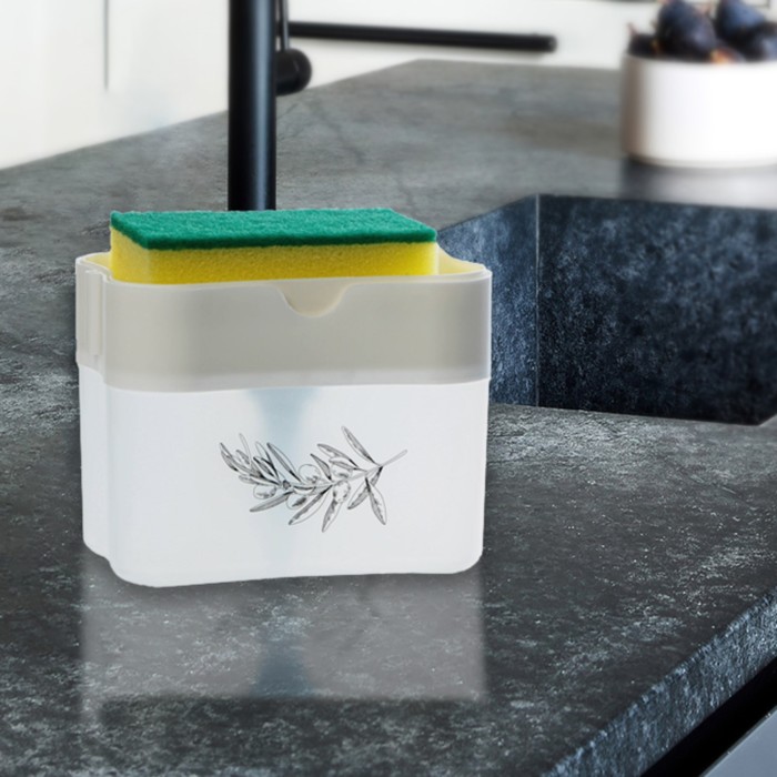 Диспенсер для моющего средства , прекрасное решение чтоб сделать мытье посуды более комфортным и быстрым а так же избежать мыльных подтеков от губки на раковине, т.к губка для мытья будет всегда лежать на дозаторе для моющего средства.