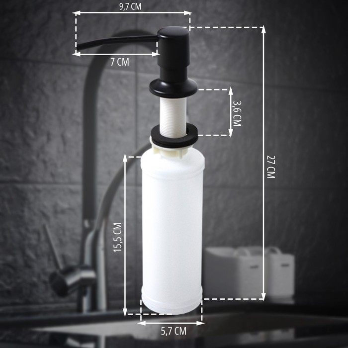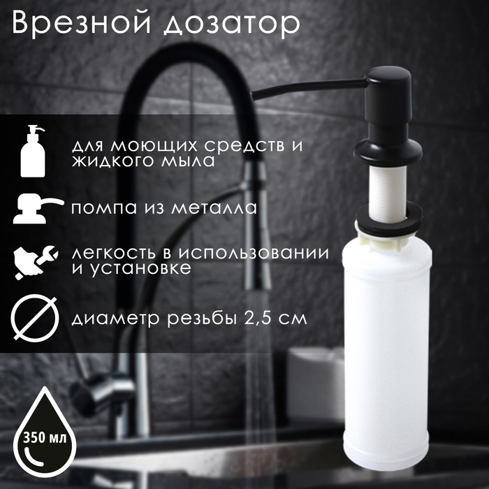 Врезной дозатор для жидкого мыла прекрасно впишется в интерьер вашей кухни или ванной комнаты, при этом создав визуального шума. Диспенсер встраивается в поверхность мойки или столешницы, благодаря чему не занимает много места. Подходит для столешницы толщиной 3,5 см.