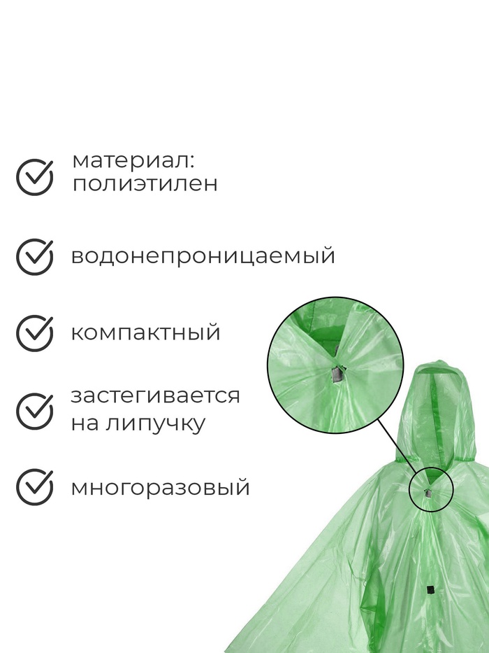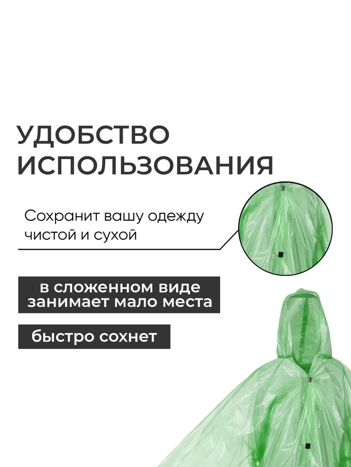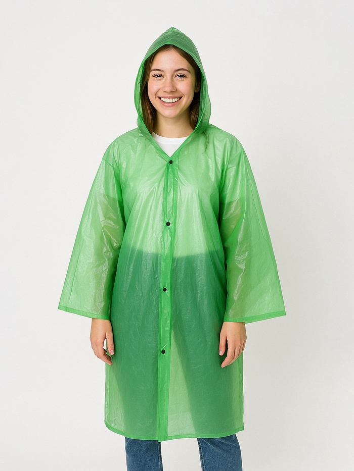 Дождевик сохранит вашу одежду чистой и сухой. В сложенном виде он занимает мало места и легко убирается в рюкзак или сумку. С дождевиком руки остаются свободными, не нужно брать с собой зонтик.