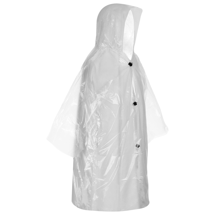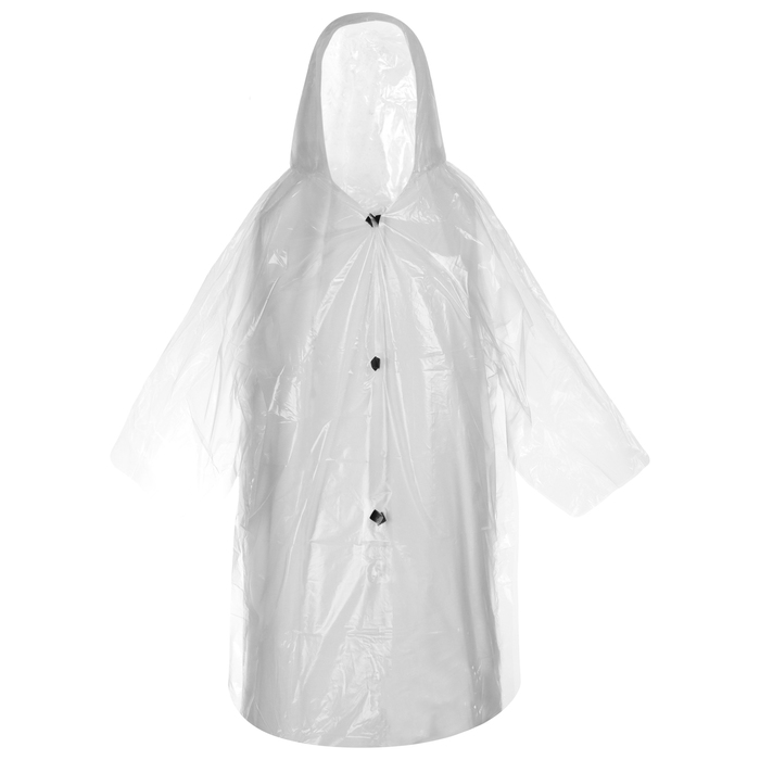 Дождевик — отличное средство для защиты от непогоды. Водоотталкивающий материал препятствует промоканию одежды и волос, а надёжные застёжки-липучки не дают изделию расстегнуться даже при сильном ветре.