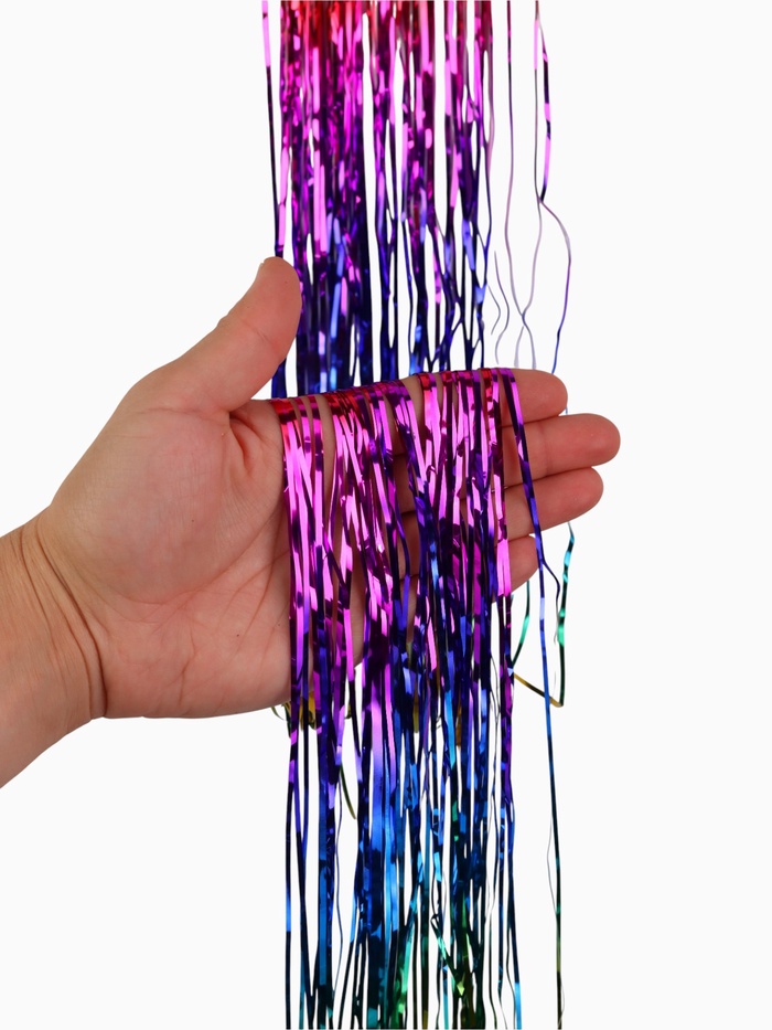 Этот дождик превращает ёлку или интерьер в часть вашей семейной зимней истории. Разноцветные полосы и мягкие формы работают вместе, чтобы создать атмосферу радости и уюта. Используйте его как основной фон или как яркий акцент — он одинаково хорошо усиливает дух Нового года и тепло домашних встреч.