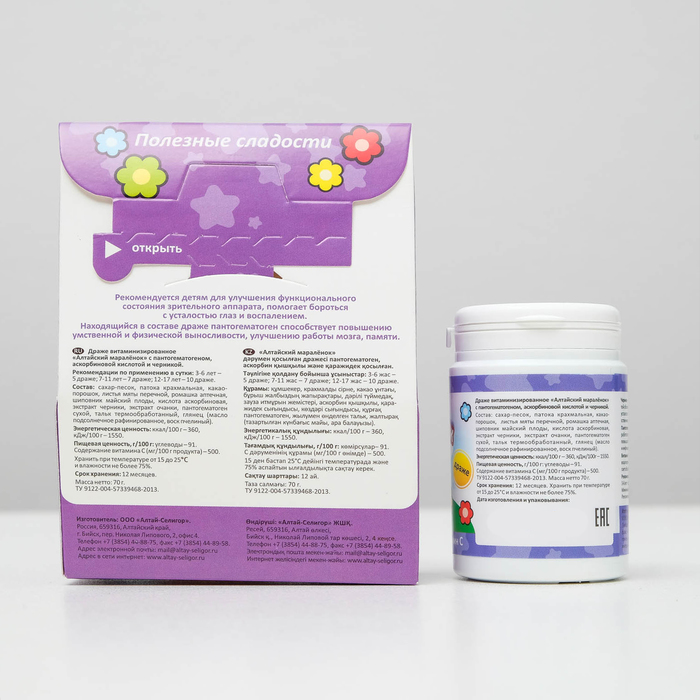 Драже рекомендуется при напряжении и усталости глаз. Черника и пантогематоген улучшают зрение, способствуют умственному развитию, снижают утомляемость и повышают успеваемость ребёнка, укрепляют иммунитет. Это 100 % натуральный продукт без консервантов и вредных добавок.