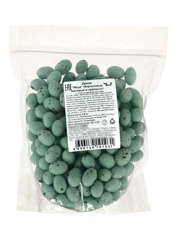 - востребованный вариант среди запросов «драже яйца для торта» и «кондитерские драже бирюзовые».