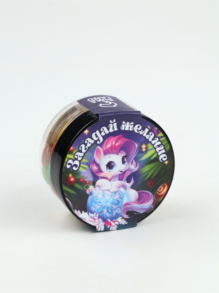 Состав: сахар, заменитель какао-масла (рафинированные дезодорированные, растительные масла, в натуральном и модифицированном виде, эмульгаторы – сорбитан тристеарат, соевый лецитин, антиокислитель – концентрат смеси токоферолов), сыворотка сухая молочная, молоко сухое обезжиренное, соевый лецитин, загуститель – желатин, глазирователь – воск карнаубский, пищевые красители: Е102, Е133, Е124, Е155, Е171, Е110, ароматизаторы. Возможно содержание следов глютена, арахиса.