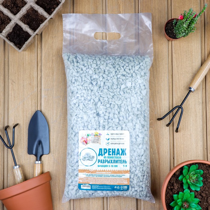 Дренаж и разрыхлитель из пеностекла «Рецепты Дедушки Никиты» фр 5-10 мм, 5 л