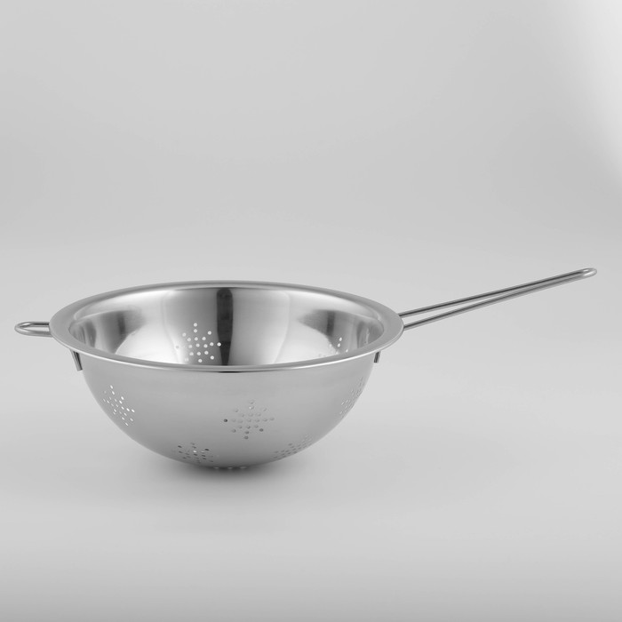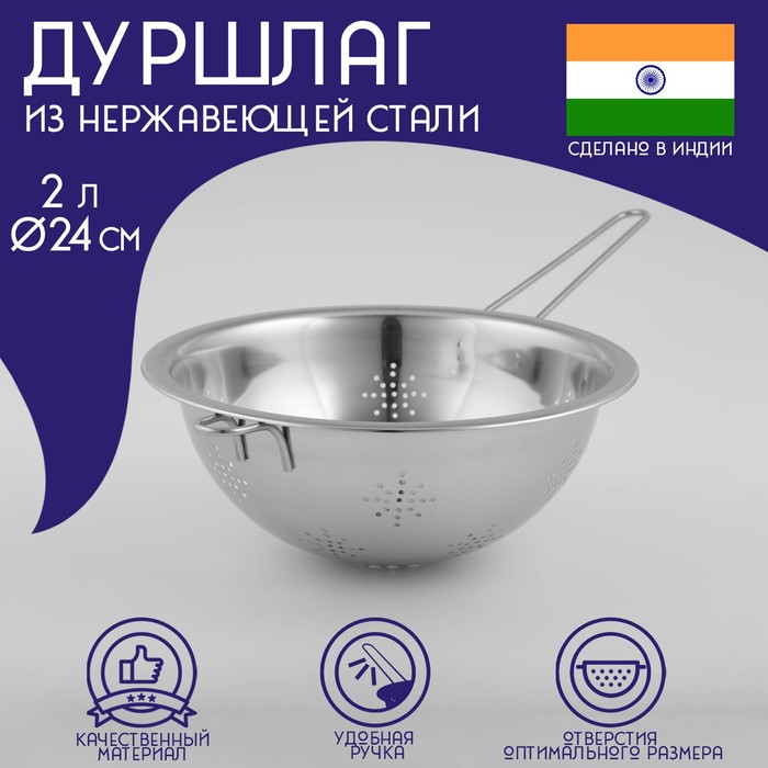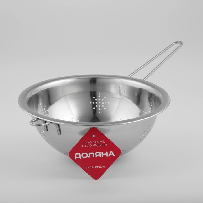 Дуршлаг изготовлен из качественной нержавеющей стали и имеет удобную ручку. Такой посудой легко пользоваться и легко мыть.