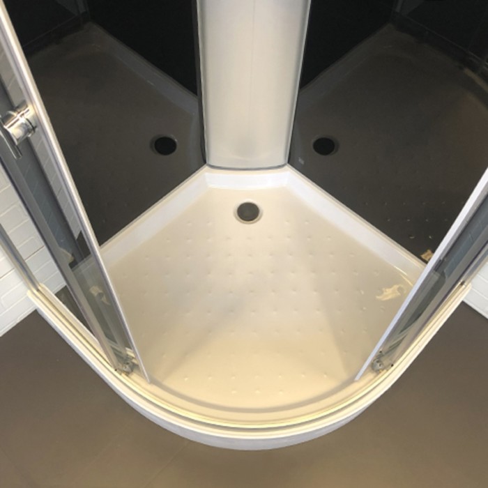- Низкий поддон – ABS пластик, белого цвета, четверть круга