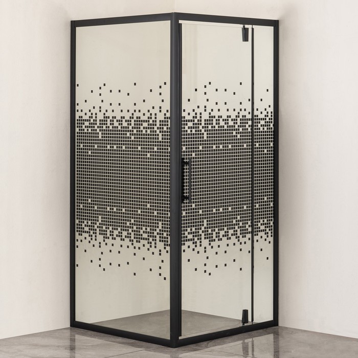 Стенки и распашная дверца душевого уголка - прозрачное стекло толщиной 6 мм с рисунком мозаика.