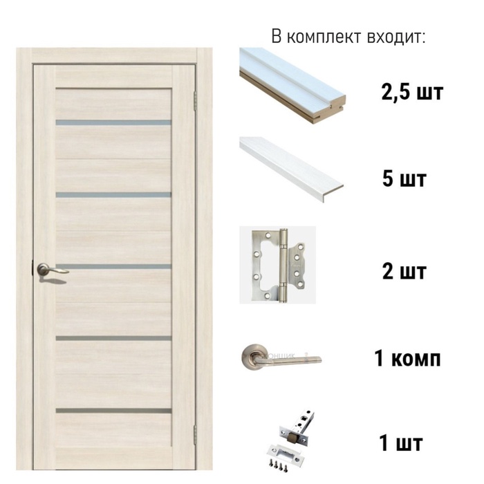 Дверь межкомнатная комплект 206, со стеклом мателюкс, 2000×600 мм, экошпон, цвет ясень снежный