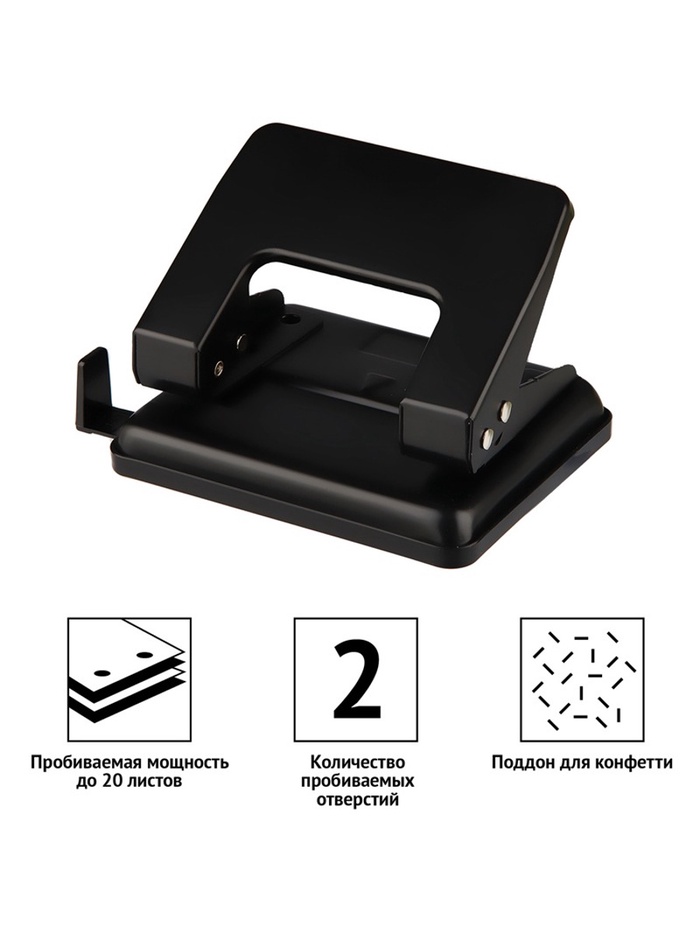 - Высокая производительность – пробивает до 20 листов: позволяет быстро и аккуратно создавать отверстия в больших объемах документов, экономя время при подготовке отчетов, презентаций или архивных файлов.