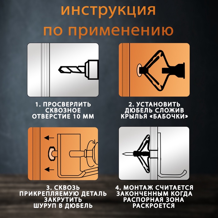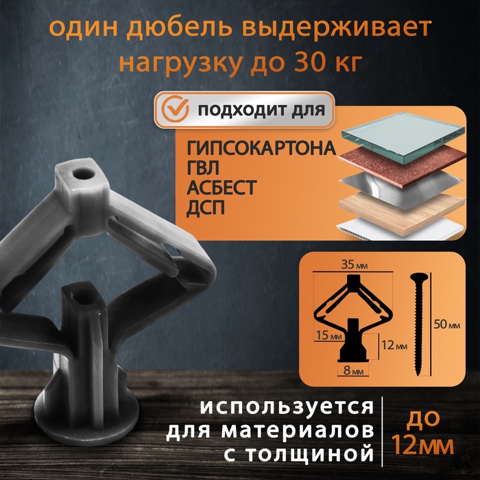 Дюбель "ТУНДРА" тип "Бабочка" – это крепежное изделие, с помощью которого крепят предметы интерьера к пористому и хрупкому материалу, как гипсокартон.