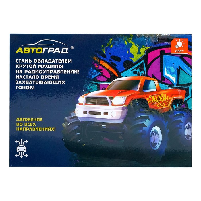 Радиоуправляемая машина-вездеход способна проехать там, где для легковых авто дороги нет! Большие колёса и высокая пружинная подвеска помогут преодолеть любые препятствия.